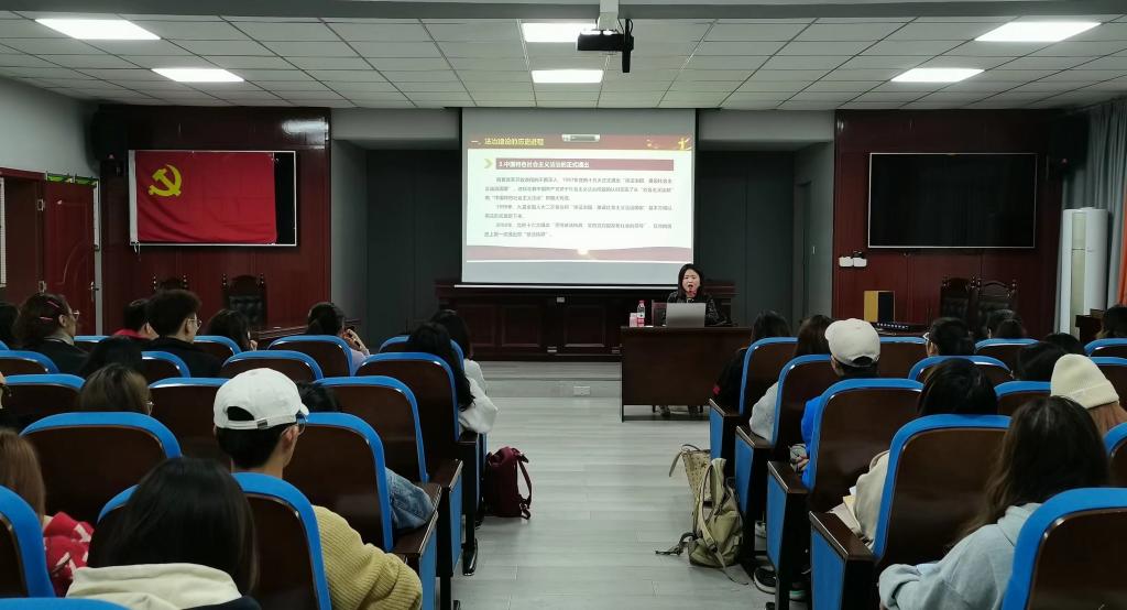 为推动入党积极分子进一步了解国家法治建设,增强法治意识,强化法治观念,10月19日下午,学院于文法楼119教室开展了以“中国法治建设历程与成就”为主题的专题党课。本次党课由学院党委副书记唐薇主讲,入党积极分子培训班全体学员到场聆听。