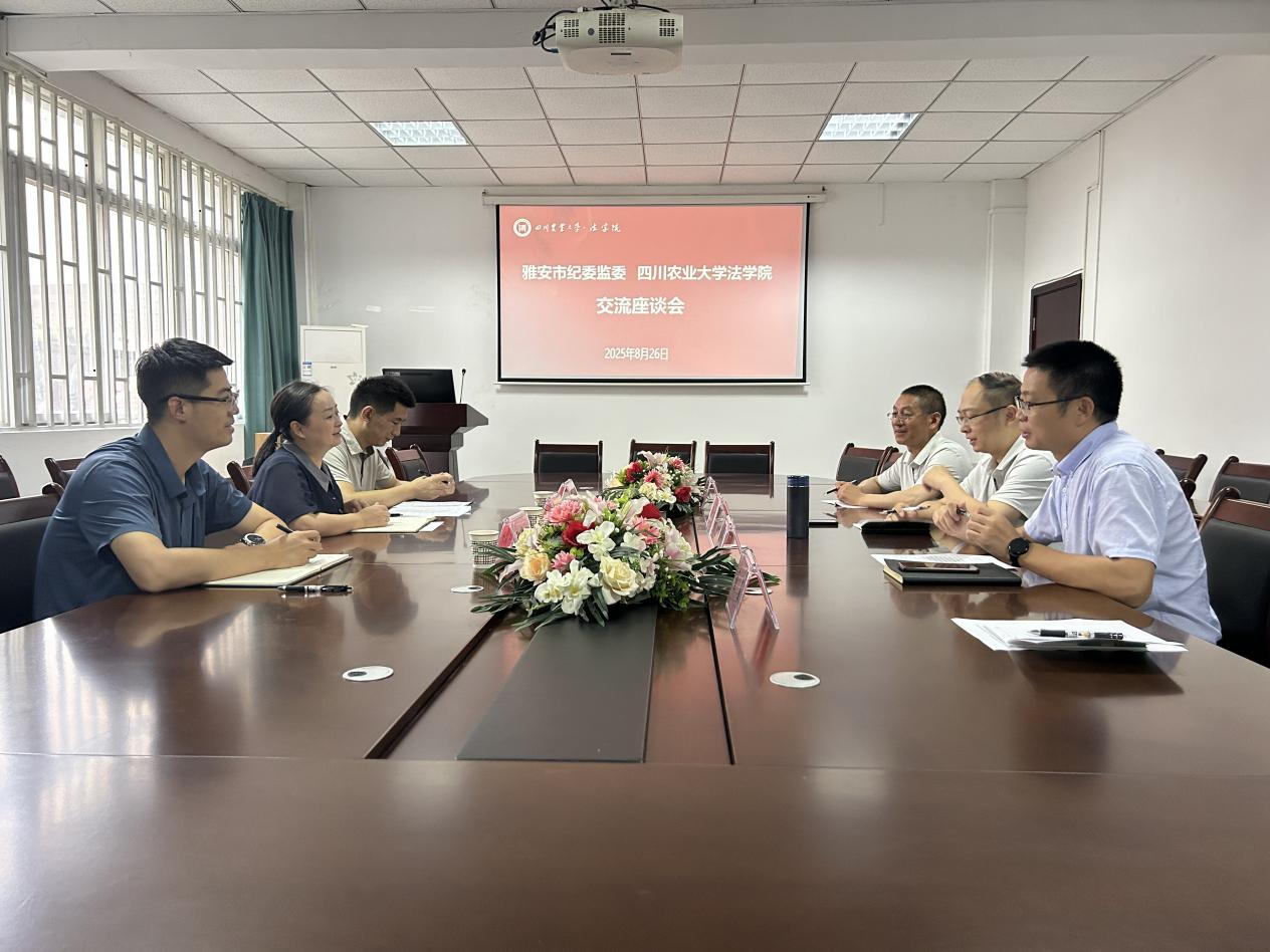8月26日上午,雅安市纪委监委组织部部长陈曦一行三人,就2025年全市纪检监察干部能力提升培训计划来院调研交流。学院院长颜勇、党委书记周海波、“两办”主任参会。
