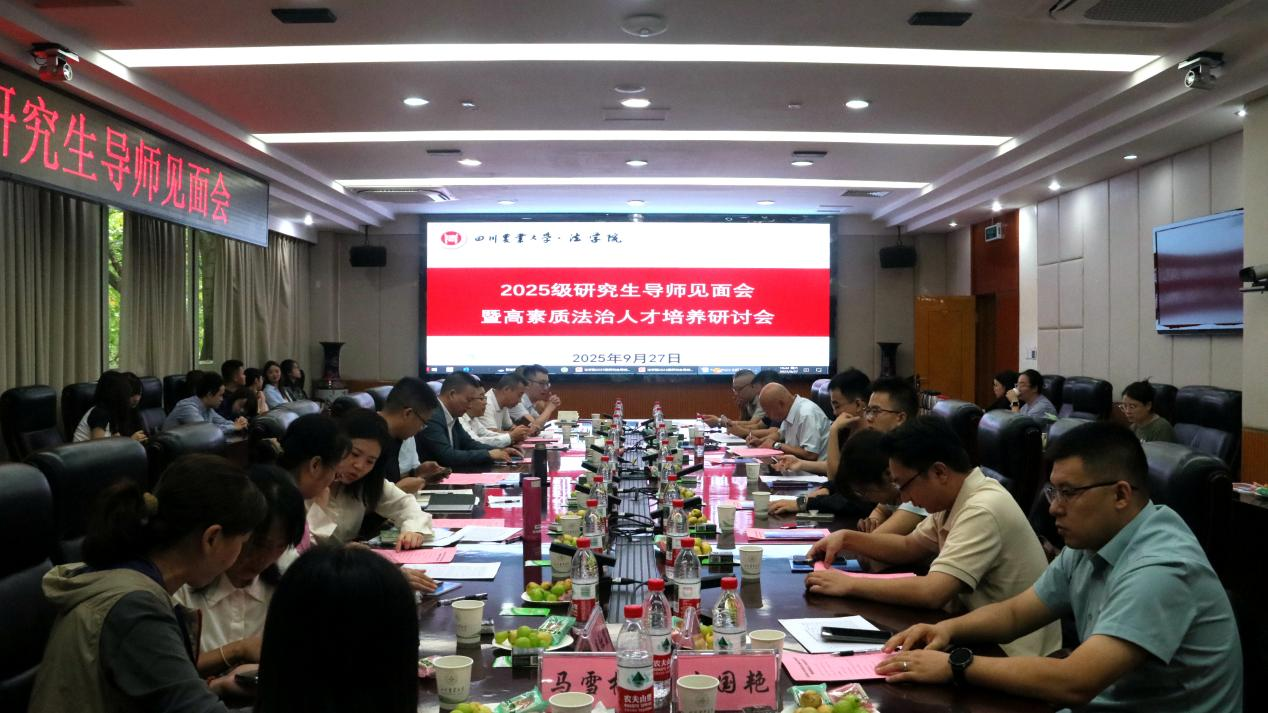 9月27日,学院在逸夫楼二会议室举行2025级硕士研究生导师见面会暨高素质法治人才培养研讨会。院长颜勇、院党委书记周海波,院党委副书记、纪委书记、副院长唐薇、校内外导师代表、校友代表张琳以及全体2025级研究生参会,会议由颜勇主持。