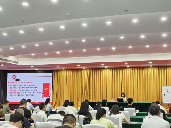 近日,国网四川省电力公司二级单位法律人员履职能力培训班在乐山举行,国网四川省电力公司各市州供电公司、直属单位企业法律顾问100余人参加培训。我院唐薇副教授应邀开展专题讲座。讲座以《民法典》合同编的解读与适用为主题,系统梳理了合同编的主要内容及修订亮点,并聚焦电网企业业务场景,结合日常经营中的常见问题进行了深入剖析。讲座内容详实、案例丰富,得到了参训人员的广泛认同和高度评价。
