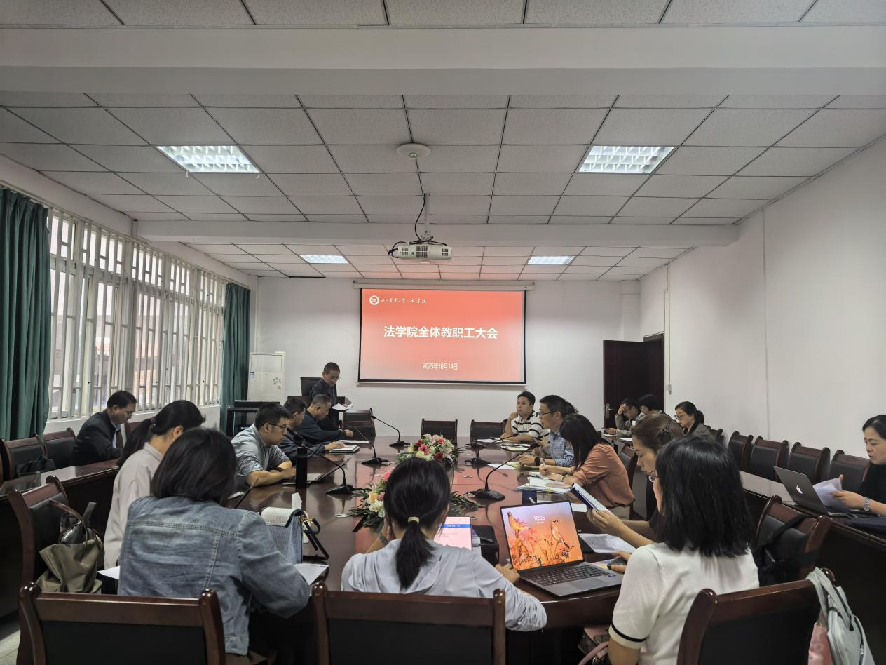 党委副书记、纪委书记,副院长唐薇通报了2025级研究生入学以来开展的导师见面会、入学教育等系列主题活动,并就2026级研究生推免及招生工作进展情况作了说明。她介绍了学院近期发布的《研究生学风建设行动方案》,解读了2025年研究生学情调研报告,强调全体研究生导师要切实履行导师职责,以学风建设为抓手,着力培养高素质法治人才。