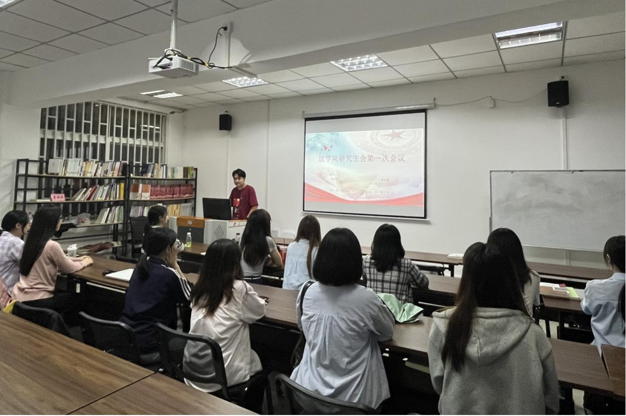 为部署新学年工作,激发组织活力,2025年10月16日晚,法学院2025届研究生会第一次全体会议在文法楼117会议室顺利召开。研究生会主席团成员及各部门新成员齐聚一堂,会议由研究生会主席王玉阶主持。