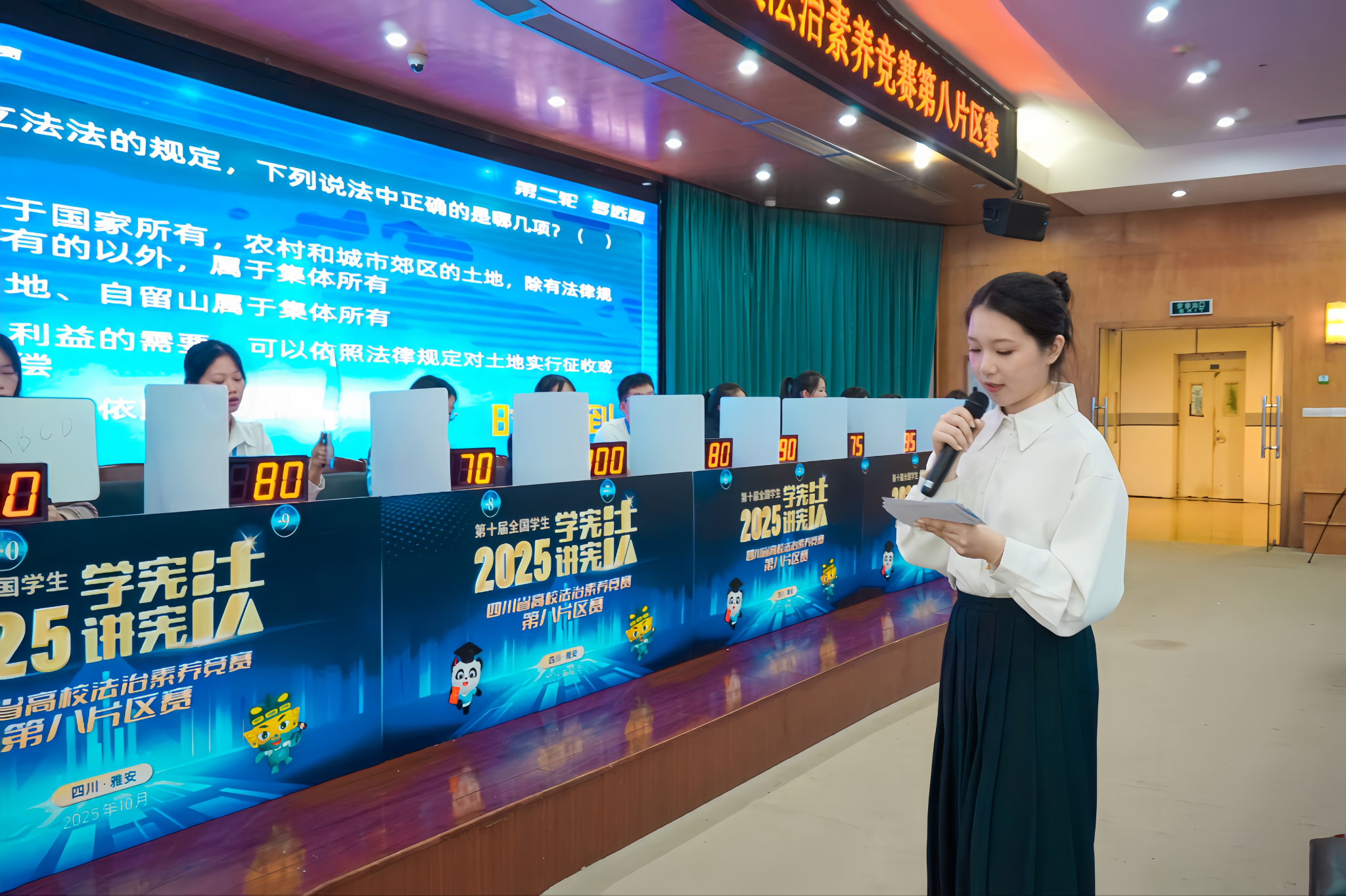 10月16日,由四川省教育厅主办,我校承办,我校党委宣传部、党委学工部、法学院、学生法律援助中心、农情师生宪法宣讲团协办,青少年法治教育中心支持的第十届全省学生“学宪法 讲宪法”高校组第八片区法治素养竞赛在雅安校区圆满落幕。
