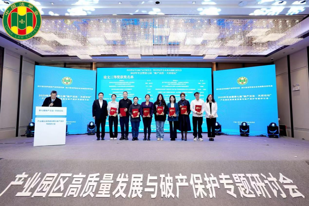 11月1日,四川省法学会破产法学研究会、企业法学会法商融合研究会2025年年会暨第七届破产法治·天府论坛在成都顺利举行。本次会议由四川省破产法学会、企业法学会法商融合研究会、四川天府新区中央法务区破产人管理协会主办,成都理工大学破产法与企业保护研究中心、破产法治·天府研究基地、成都市哲学社会科学研究中心——企业保护与法治环境建设研究中心共同承办。本次论坛设置两场主题报告和三个分会场。各分会场研讨中,来自中国人民大学、中国政法大学、上海交通大学、西南政法大学、四川大学、北京航空航天大学等多所高校以及省内外各地实务部门的专家学者分别围绕“产业园区发展与破产保护”“法商融合助力高质量发展”“破产法修改及司法实务”三个主题展开深入交流。