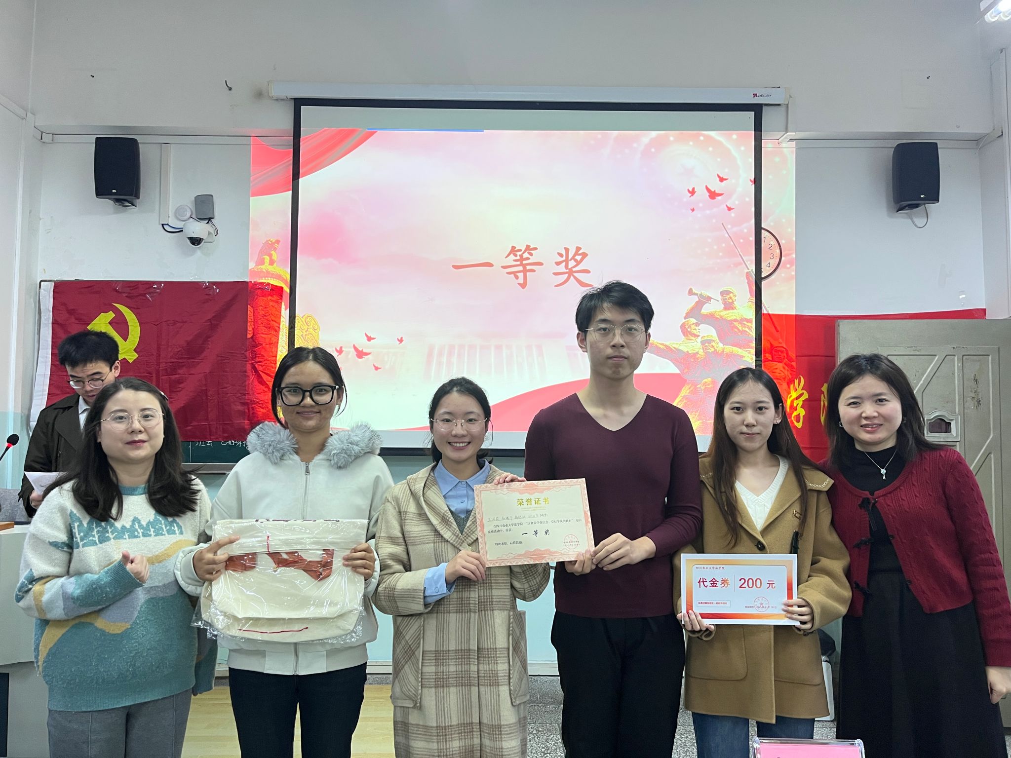 竞赛内容涵盖了第二十届中央委员会第四次全体会议公报、党章与党内法规、党的百年发展历程、校学风建设文件等,设置了单选题、多选题、判断题和风险题等环节。八支参赛队伍经过激烈角逐,最终决出一等奖、二等奖、三等奖及优秀奖,嘉宾现场为获奖队伍颁发了证书与奖品。