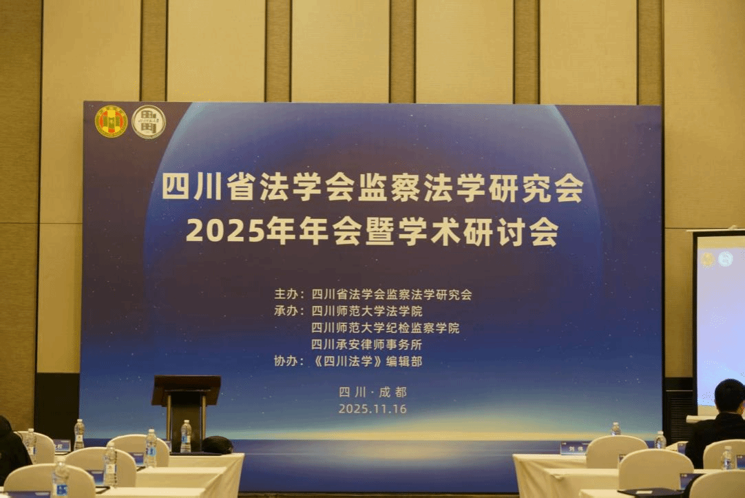 11月16日上午,由四川省法学会监察法学研究会主办,四川师范大学法学院、四川师范大学纪检监察学院、四川承安律师事务所共同承办的四川省法学会监察法学研究会2025年年会暨学术研讨会在成都举行。