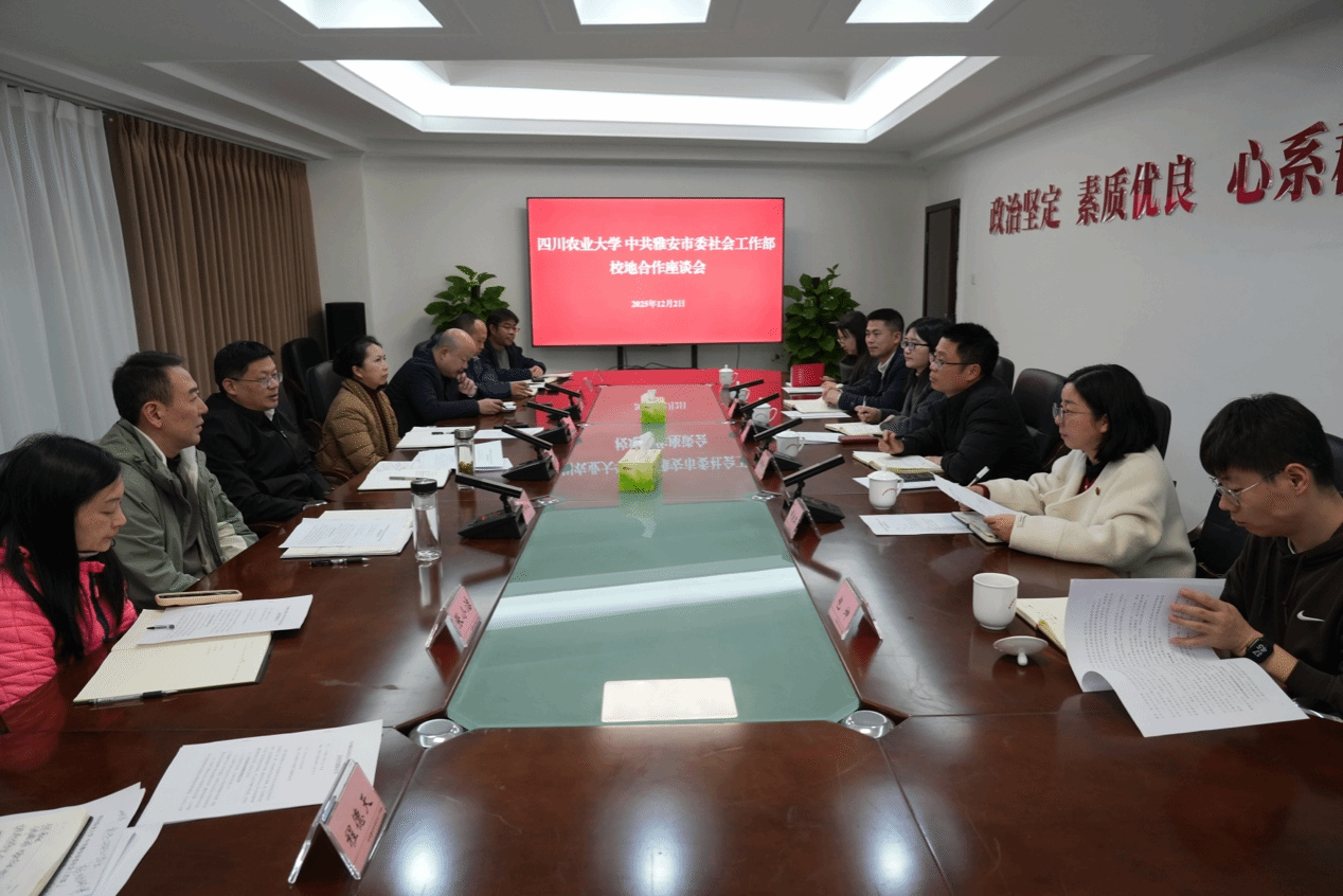 双方围绕合作意愿、重点方向等议题进行了充分交流,一致认为要聚焦“四个共同”进行务实合作。一是共同落实好市委市政府同四川农业大学共识和安排部署;二是共同做好社会工作理论研究和宣传工作;三是共同推动四川农业大学社会工作学科和雅安社会工作高质量发展;四是共同谱写四川农业大学法学院和市委社会工作部友谊新篇。