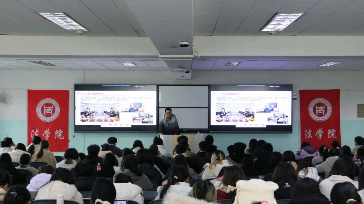 12月17日中午,学院在1教301举办学生干部能力提升系列活动——新闻写作培训,特邀学校党委宣传部新闻科科长龙鸿宇担任主讲嘉宾,学院第十届学生组织全体干部及全体研究生学生干部百余名同学到场学习。
