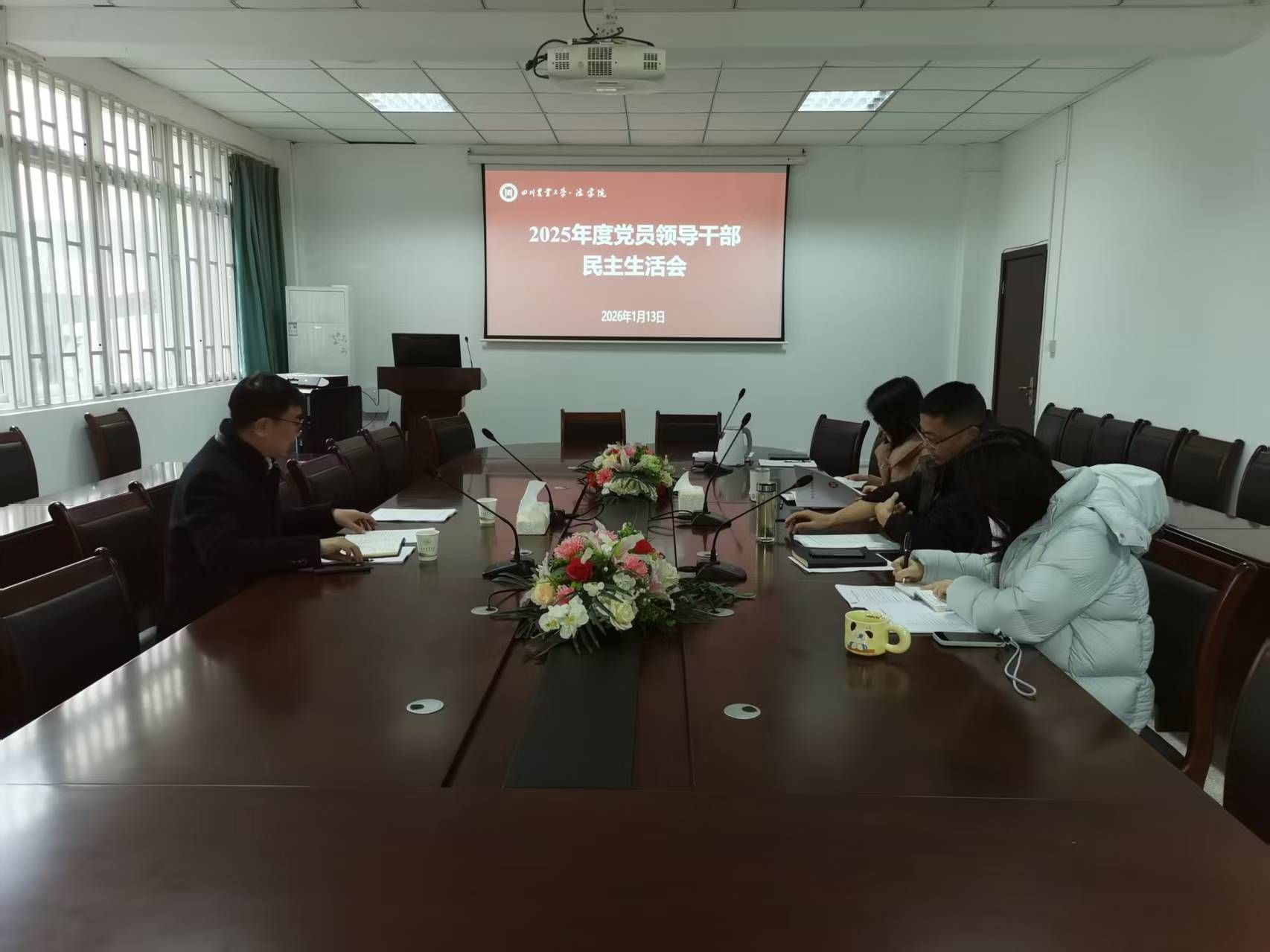 1月13日下午,学院在112会议室召开党员领导干部民主生活会。校党委副书记、纪委书记刘鹏到会指导,学院党委书记周海波,党委副书记、纪委书记、副院长唐薇,副院长兰婷参加会议,行政办主任陈波列席会议。会议由周海波主持。
