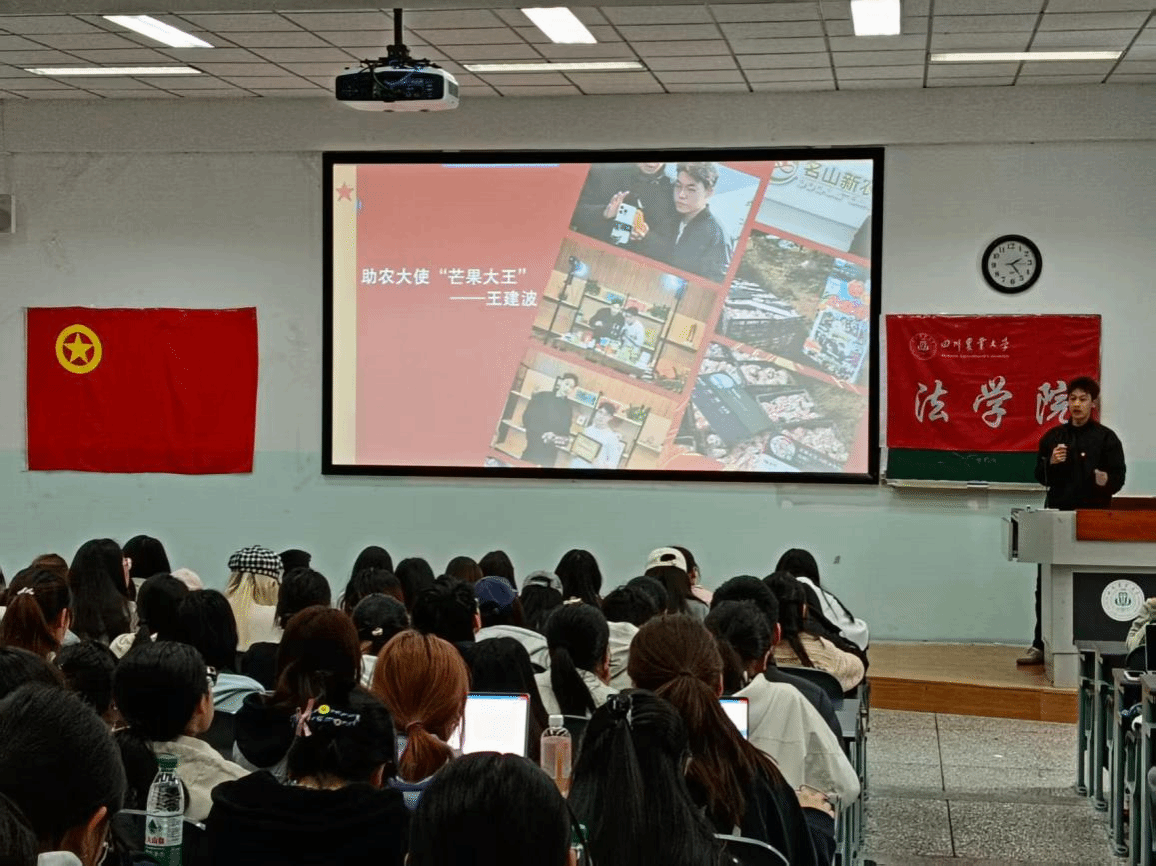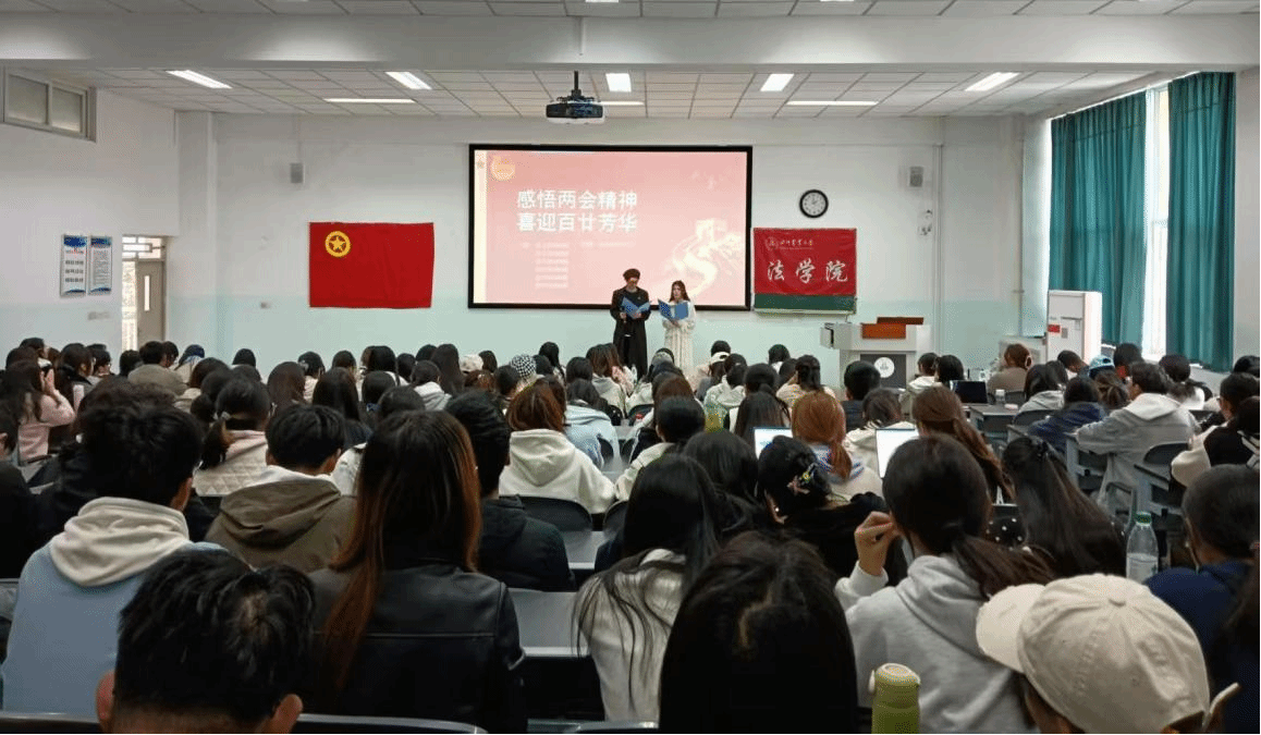 3月27日,四川农业大学法学院法学202501、202502、202503及社工202501、202502、202503团支部于10教B401教室联合举办“感悟两会精神,喜迎百廿芳华”主题班团活动。